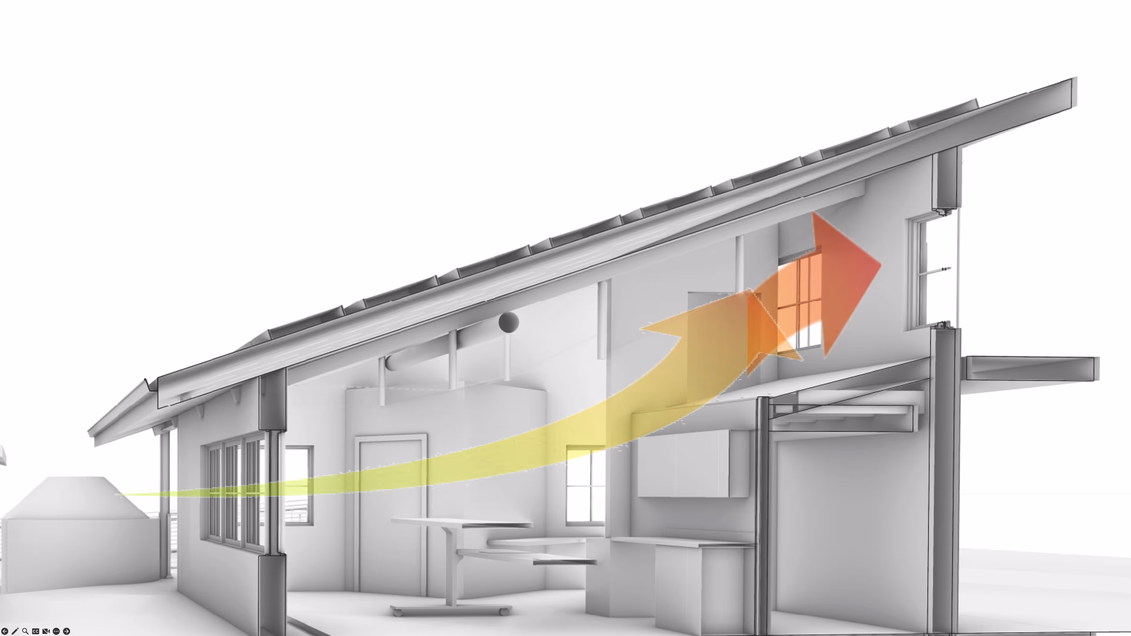 What better place to put a WIND veil than a BREEZEway?! Wind veils are beautiful, biophilic building screens that indicate the flow of air, creating liquid-like waves (which have been found to have a calming effect on humans) across the surface of the building. Not only will this be a way to create an educational element, but a way to add some beauty to a wall that was solid because of the need for energy efficiency in the greenhouse. This will help us to actually observe how accurate our CFD (computational fluid dynamics) analysis was, when we were concerned about the greenhouse inhibiting our carefully designed cross ventilation through the house.