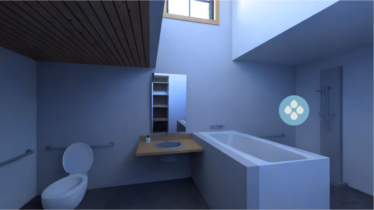 Explore the tool-tips (colorful little clickable dots with information in them) the digital twin environment to the right to learn how this could express itself at this scale.