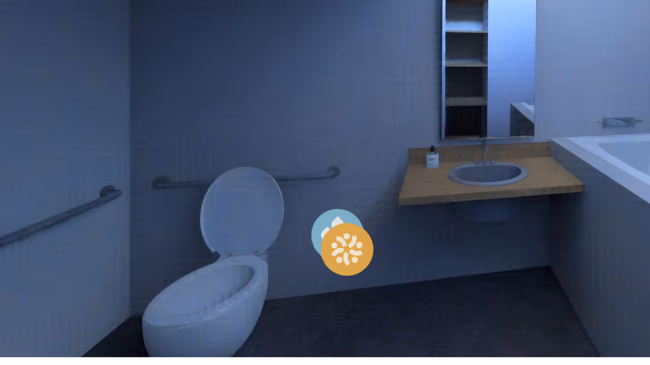 This approach is not only much safer – it’s also something that has long been out of reach for many people with mobility challenges. Bathing and showering can be too risky for them and their caregivers, largely because they only have consistent access to non-accessible bathrooms like the one shown in this image of Ron’s current setup. These are the types of facilities typically found in apartments that people with mobility impairments can afford when relying on state subsistence benefits. While programs do exist to support modifications even in rental units, landlords are often unwilling to allow them, or the small square footage and other architectural limitations make renovations cost-prohibitive.